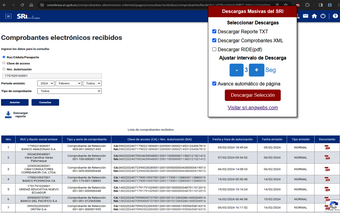 Comprobantes SRI è un'estensione per Firefox progettata per facilitare il download di comprovanti elettronici emessi e ricevuti direttamente dal sito web del SRI. Questa utility è particolarmente utile per utenti che necessitano di gestire un gran numero di fatture in modo efficiente. L'estensione offre la possibilità di scaricare più fatture contemporaneamente, semplificando così il processo di gestione documentale.